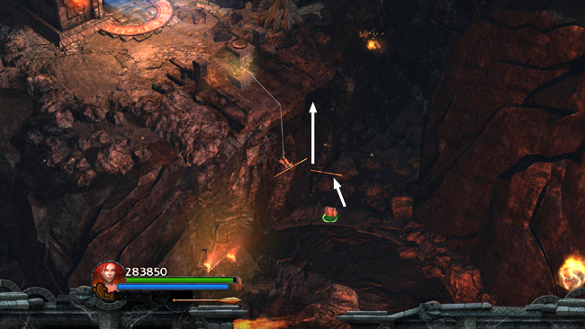 Outside, drop back down into the ARENA, taking care to avoid the flame jet below. Then proceed to the west.