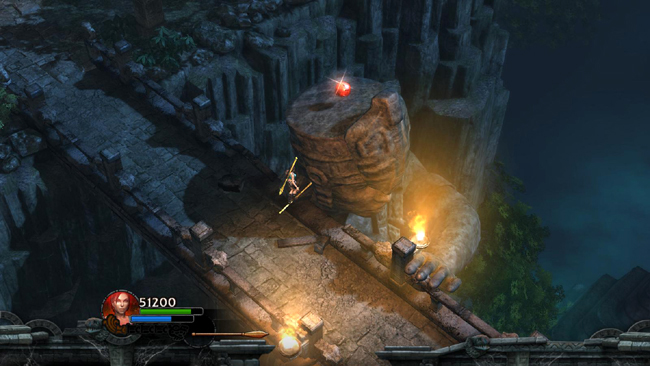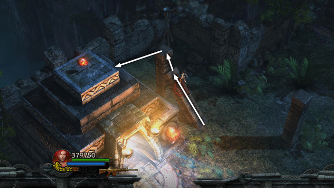 NOTE: If you're not interested in all the pickups and Reward Challenges—or if you're trying for the 5-minute Time Challenge—you can skip the rest of this area. Drop down on the left, climb back onto the elevated walkway and return to the SPIDER TOMB (and pick up the walkthrough below at the section titled "RETURN TO THE SPIDER TOMB.")