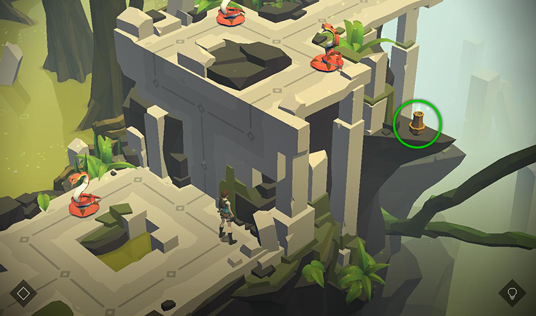 Now your path is clear to climb the wall to the ledge above. Just ignore the last 2 snakes. Before moving onto the glowing diamond to finish the level, be sure to smash the vase on the left to recover a fragment of THE TWIN SNAKES relic (1/10).