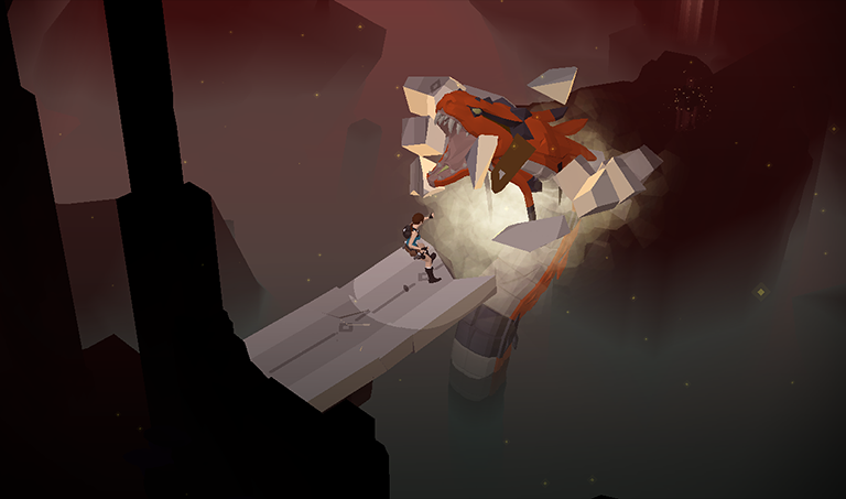 ...the QUEEN OF VENOM destroys the path, sending Lara plummeting into the abyss.
