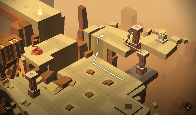 To finish the level, either un-stack the pillars by doing the above steps in reverse, or just restart the section (tap or click on the diamond icon then the "rewind" arrow icon) and solve the puzzle the usual way. I find the latter less time-consuming. If you've replayed this level just to get the achievement, there's no need to finish at all. Just exit to the main menu.