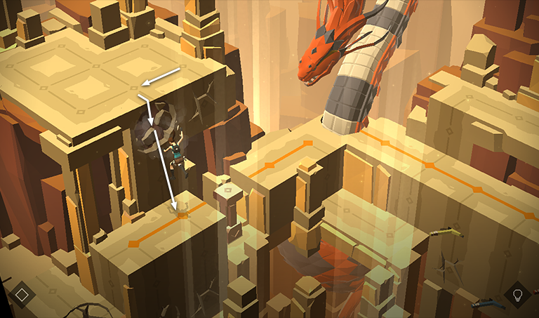 Lara can then move to the right, then forward toward the lizard in order to kill it.
