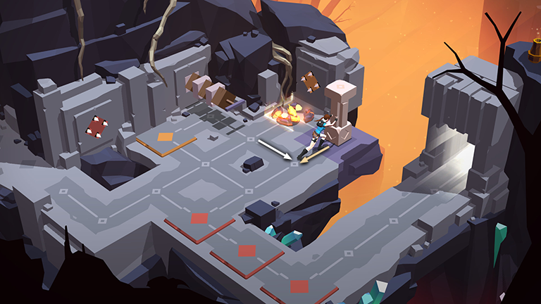 Step to the right and pull the switch to slide the gray block with the movable pillar closer to the snake, which should still be disabled. As with the retracting switches in previous levels, this one only remains active for six turns. After that, the switch and the gray block reset.