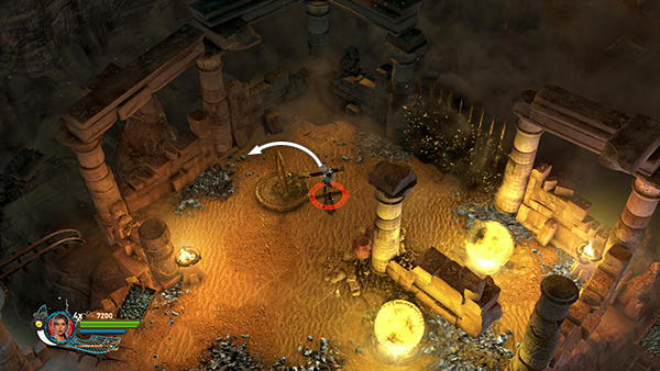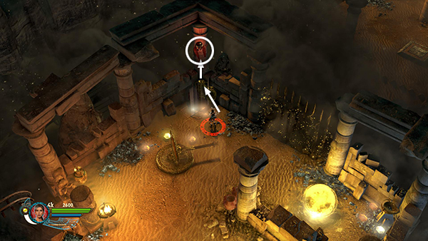 NOTE: In the walkthrough for the first level I attempted to note the location of every gem, breakable urn, etc. In later levels, I don't mention them all. So unless you're attempting a time challenge, stay alert. Try to kill every enemy, light every brazier, and break or blow up every destructible object, including vases, cracked floor tiles, sarcophagi, etc., for maximum score.