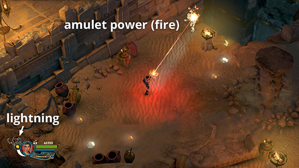 Lara Croft and the Temple of Osiris contains more than 50 different weapons, plus 100+ collectible rings and 90+ amulets. When equipped, rings and amulets enhance (and occasionally decrease) your character's abilities. Rings affect only the character wearing them. Amulets confer special powers on the entire co-op party.