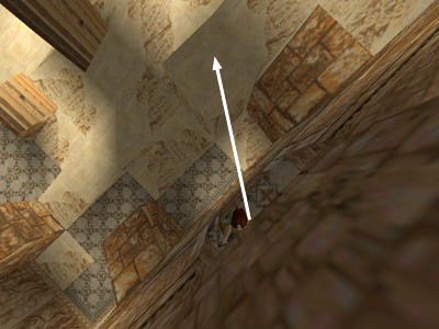 USING THE CORNER BUG TO GET THE UNREACHABLE LARGE MEDIPACK: There are many seemingly unreachable places in the various Tomb Raider games. One particularly enticing one is the light stone structure with the large medi pack in the ROOM WITH SQUARE PILLARS AND FIVE SWITCHES. To get there, you can use a technique that players call the "Corner Bug" or "Jump Trick." (Jeff Reid brought this to my attention, but I believe the corner bug was a known quantity before it was applied to this particular spot in the game.)