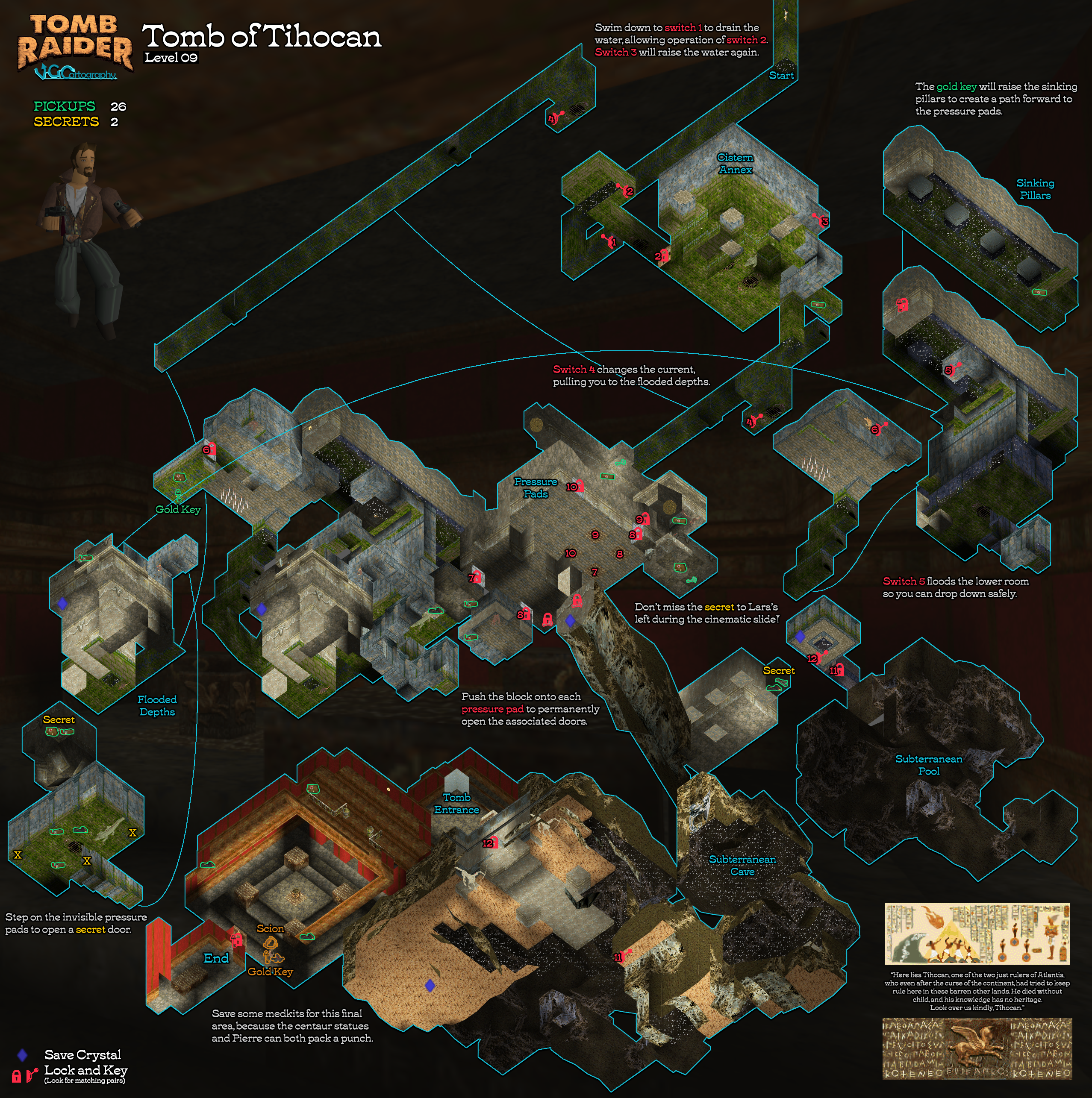 Walkthrough text and diagrams copyright © 1998- - Stellalune (). Special thanks are given to the participants in the alt.games.tombraider newsgroup, without whom some parts of this walkthrough couldn't have been written. Thanks also to Ian T., Martin V., Mark R. and Black Tiger for various contributions for this level. All TR1 screenshots were made using Glidos and Fraps. Feel free to copy or print this walkthrough for personal use. By all means, share it with friends, but please include this credit line so people can send me their feedback. No part of this walkthrough may be reproduced on another site without permission. Follow this link for details about this site's advertising and privacy policy.