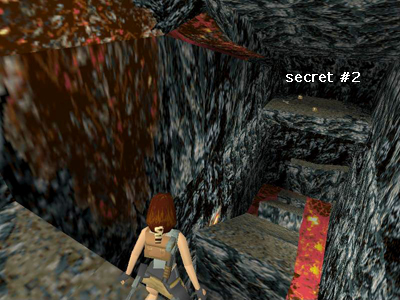 Traverse to the right all the way over the lava pit and drop down into secret #2.