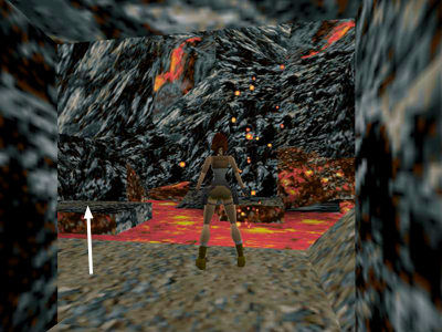 Take another running jump to the next block. Turn right and take a final running jump into the opening in the cave wall.