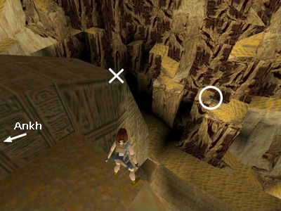 NOTE: Ideally this alternate method for reaching the level's only secret, the Uzis, should be used after obtaining both Ankhs. Then you only have to climb to the top of the sphinx once. Of course, you can go for the guns at any time and then return to the top of the sphinx later.