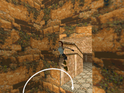 Here Lara is standing inside the secret area after landing the jump.
