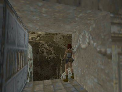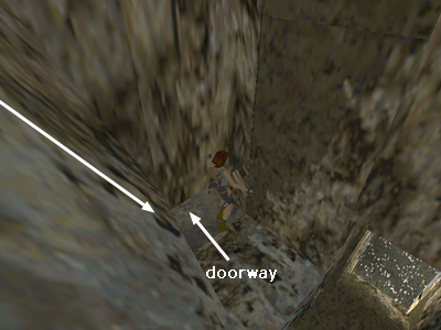 Position Lara at the right side of the doorway facing down the slope. Turn her about 30 degrees to the left, as shown in the screenshot above.