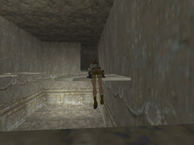 . . . and immediately take a running jump to grab the edge of the tile straight ahead near the alcove. Pull up and run into the alcove before the tile breaks. (Thanks to Mark R. for this alternate strategy.)