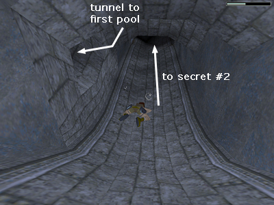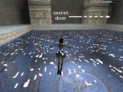 Follow it to another pool and climb out on the far side. In the far right corner is the door you just opened using the lever. Inside is secret #2.