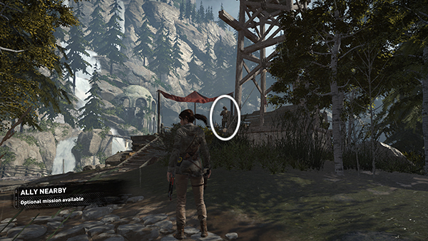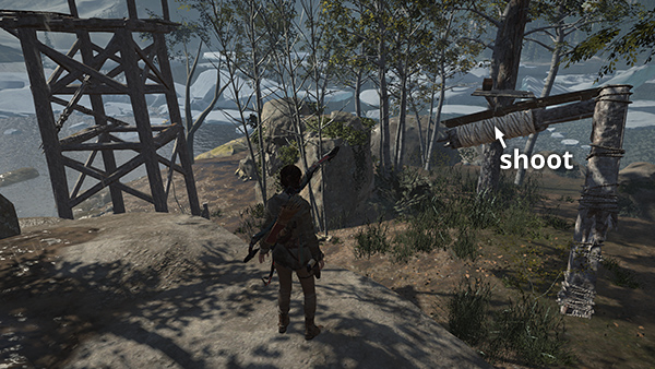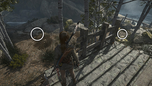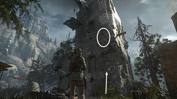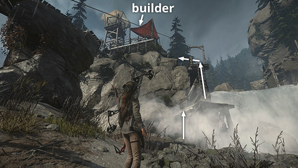 NOTE: After completing the Defensive Strategy mission, the two guard towers will be fitted with ladders so you can climb into them. The tower near the lakeshore is part of the High-Dive Challenge, covered below. The guard tower near the Remnant builder has a rope-wrapped post that will allow you to run a line into the tall, stone tower to the south. You can climb over there now, but if you wait until you have explosives, you can access more of the tower. Again, see the section below on revisiting this area for details.