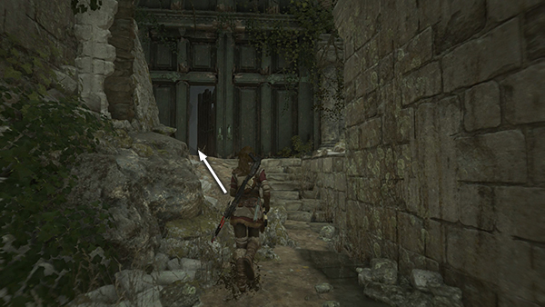 NOTE: If you happen to refer to the annotated level map, you may notice a relic at the south end of the square. This is actually on the other side of the big doors. You'll reach it later.