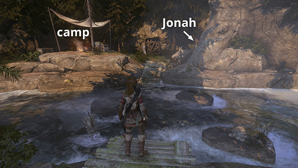 As you continue along the passageway, Jonah calls Lara over the radio. Apparently some of Jacob's people found him after the avalanche and brought him to safety. Lara is angry at him for risking his life to come after her. She tells him to stay where he is and she'll be there soon.
