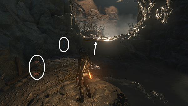 Continue along the passageway. When you come to a drop-off, hop down into the area below to find the last survival cache (3/3). (screenshot)
