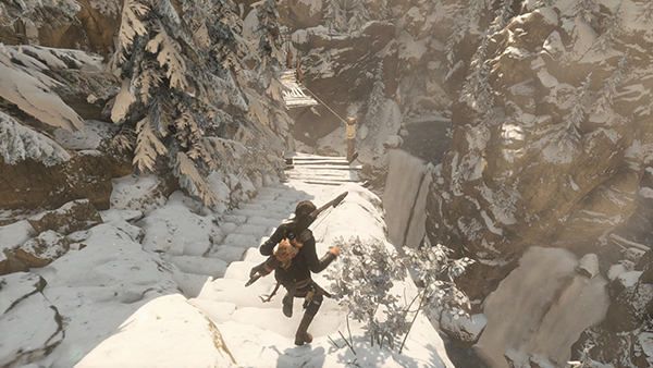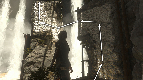 ENTERING THE VALE: When you squeeze through the opening in the wall into the canyon beyond, the air is full of pollen, and Lara starts to go a little woozy. Follow the passageway into the forest. It's creepy as heck, and the path twists and turns a bit, but you can't get lost. Follow the apparition resembling Lara's father and be prepared for a few jump scares along the way. After a short sequence inside a room that looks like it's come straight out of Croft Manor, continue to a wooden platform overlooking an excavation pit.