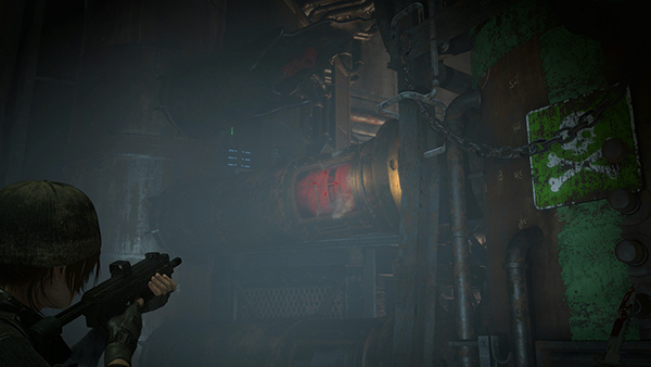When all pumps are destroyed, the red toxin will be released and compromise the whole tower, so you have to make a hasty exit. From the center of the circular platform, climb to the higher level and rush towards the newly exploded opening, where Sofia awaits with a hovering helicopter. Two Infected will pop up just before you reach the edge of the opening, so quickly dispatch them before jumping off.