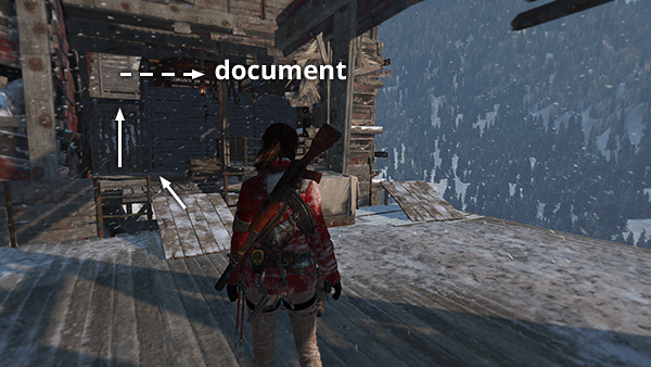 This document is in the next wooden shack just up the hill from the Logging Camp Base Camp. Again, refer to the walkthrough and level map if you need more info. (Click screenshot to enlarge.)
