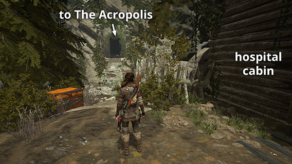This strongbox is sitting near the Cliffside Lookout Base Camp, where you re-enter the valley after completing THE ACROPOLIS. Refer to the map and walkthrough for details. (Click screenshot to enlarge.)