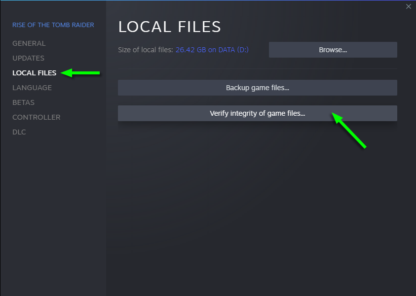 If you're experiencing game crashes, missing objects, or other minor glitches in the PC version of Rise of the Tomb Raider, try verifying game files in Steam. If this simple fix doesn't help, it certainly won't hurt.