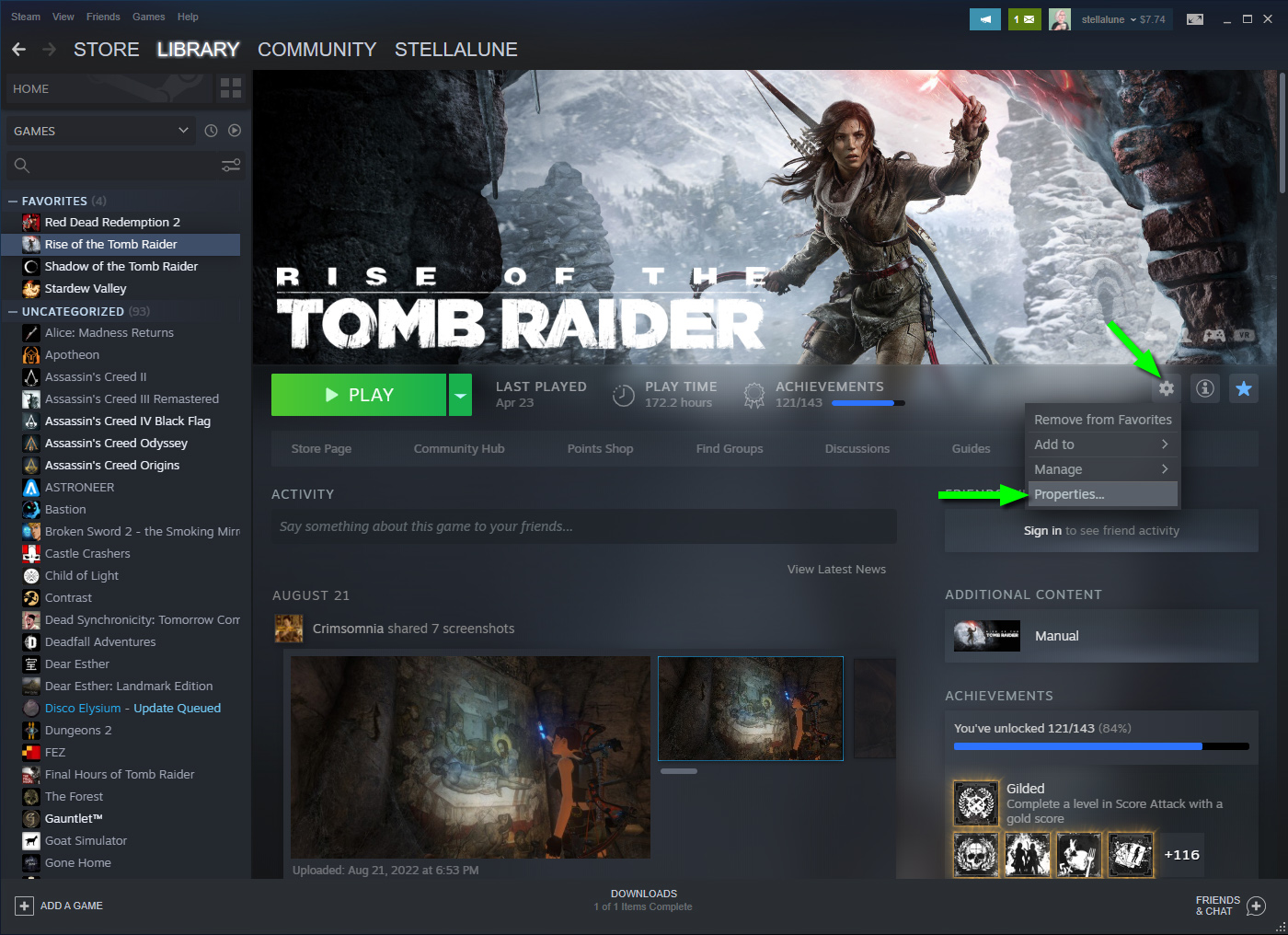 UPDATE: If you're having trouble maintaining a stable connection while playing co-op Endurance on Steam, try switching to an earlier build of the game, specificially version 811.3. To do this, navigate to Rise of the Tomb Raider in your Steam Library. Click the gear icon below and to the right of the game banner (screenshot) and choose Properties. In the next window, click Betas. Then choose build 811.3 from the drop-down list. Click OK and Steam will install that version. Both players will probably need to change builds in order to make it work.