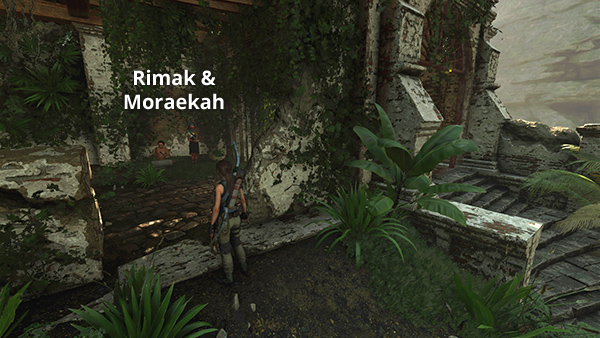 TRAVELING MERCHANT MORAEKAH: If you are visiting this area for the first time during the VIA VERITAS chapter of the main story, your old friends Rimak and Moraekah should be waiting for you just inside the ruins. (screenshot) She sells the ROPE ASCENDER and LOCKPICK, along with various other items. Trade with her now because she probably won't be here when you come out of the tomb. If you miss her here, you can find her later in these locations.