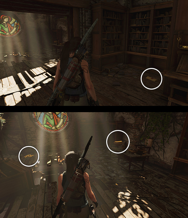 IMPORTANT: Exploring the Library advances the story and takes Lara away from the San Juan Mission. For specifics, skip down to the LIBRARY section, below. You'll be able to return to the Mission later via Fast Travel, but there's a lot you could do before this. I recommend waiting until you've covered most of the level before approaching Jonah.