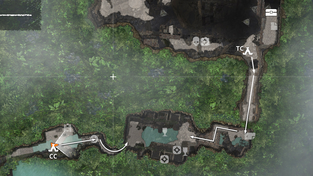 Or, if you don't have the reinforced knife, fast travel to the Cozumel Cliffs Base Camp and follow the passageway to the east to get to the room with the pool, where the relic is. Use either base camp to get back to where you left off. (Click screenshot or map to enlarge.)
