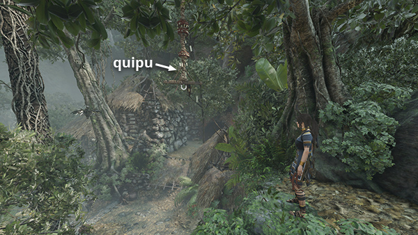 As you explore the west side of the city, keep an eye out for hanging quipus, similar to the ones you used to swing across the canyon when you first entered the Hidden City from the Trial of the Eagle area. Grapple-swing on these 3 quipus to pull them down for this challenge. To find any you missed, look for the orange dots on the map and follow these screenshots.