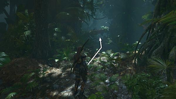FIGHTING THE CULT GUARDS: There are 10 cultists in the courtyard below, a mix of Jaguar Warriors (brown uniforms and obsidian blades), Eagle Archers (blue), and a few Serpent Guards (green). If you attempt to shoot any of them from the doorway without first dropping down, more cultists will spawn in the the upper room and attack Lara. So stealth is probably your best bet, at least to start. As always, there are various possible tactics, depending on your play style, which skills, weapons, and ammo types you've unlocked so far, etc. You'll find many vine-covered walls where Lara can hide, ledges and walls she can use for cover and traversal, jars to use for crafting smoke bombs, etc. You also have all of your equipped weapons, not just the bow. However, there's a more challenging fight against some Trinity soldiers coming up, so take out as many cultists as you can with stealth and/or arrows. Then you'll have more ammunition later. Here's one possible battle plan, which should work even if you're playing this DLC soon after reaching upper Paititi.