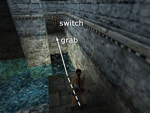 NOTE: If you aren't already familiar with the technique for setting up jumps, I highly recommend you try this now. Walk to the edge and angle Lara so she's facing where you want her to land. Then take a single hop back from the edge (Back + Jump). Press and hold Forward, then quickly press Jump, and Lara will run two steps and jump on the third, taking off right at the edge and landing on the other side of the gap.