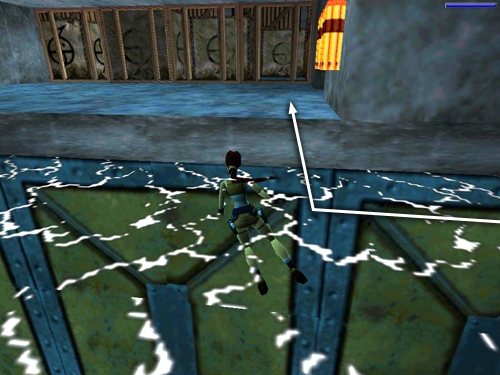 NOTE: It's possible to get outside the fence into the area surrounding the tower using a modified version of the fence bug. Details are on a separate page. Thanks to rr_carroll of Tomb Raider Tourist for sharing this discovery.