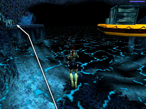 OBJECTIVES: This is another large, complicated level. You begin on the main deck of the ship, which has somehow come to rest in a huge, undersea cavern. Climb down into the cave alongside the deck to find the Stern Key. Swim through a flooded passageway to the cavern floor. Use the key to reach an underground lake, where you'll find the Cabin Key. Make your way back to the upper decks and use this key to open a door there. Then locate a hidden cave, where you'll find the Storage Key. Climb all the way back down to the cavern floor and use this key to obtain the Seraph artifact. Doing so ends the level.
