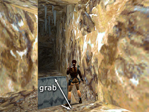 Follow the tunnel to a small, water-filled hole and icicles on the ceiling beyond. Walk to the edge of the hole, hop back once and then jump forward to grab the top of the icy ledge. Or, drop into the water and climb the ice wall from below. Pull up onto the ledge but don't step forward until after the icicles have fallen; otherwise Lara will be impaled. (screenshot)