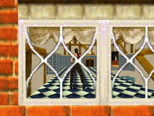 CHEATER'S ALTERNATIVE: If you just can't make it in time, you can cheat your way into the treasure room using the Tomb Raider PC Flight Patch. Download the patch, and follow the instructions included in the file. Start the training level and open the front door of the mansion. Then go to the button inside the maze (either as described above or by flying). Press the button and fly into the mansion instead of running. You should be able to get there well before the secret door closes.