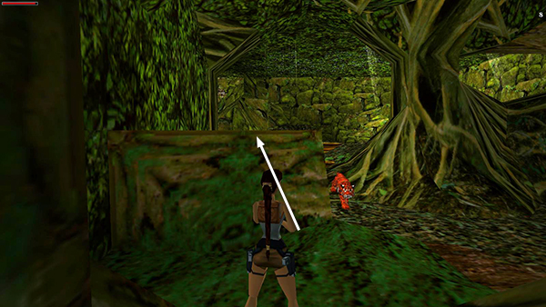 NOTES ON THE PC/MAC DEMO: Demos are are available on the TR3 Downloads page. The first PC demo is nearly identical to the first level (India: Jungle), though there are a few minor differences. The green save/power-up crystals are useless in the demo. Also in the PC demo, MP5 clips and Desert Eagle clips appear as M-16 and automatic pistol clips. In the PC demo, you begin with the shotgun, so there's no need to go after the first secret, and in any case the secrets don't register as such when you find them. Other differences are noted throughout the walkthrough.