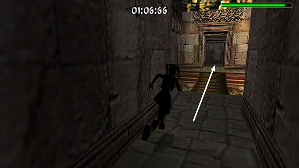 The length and difficulty of the racecourse in this level depends on the number of golden skulls you found in the previous level. Finding all eight skulls opens up the longer, more difficult course. For details see the last section of the ANGKOR WAT walkthrough.