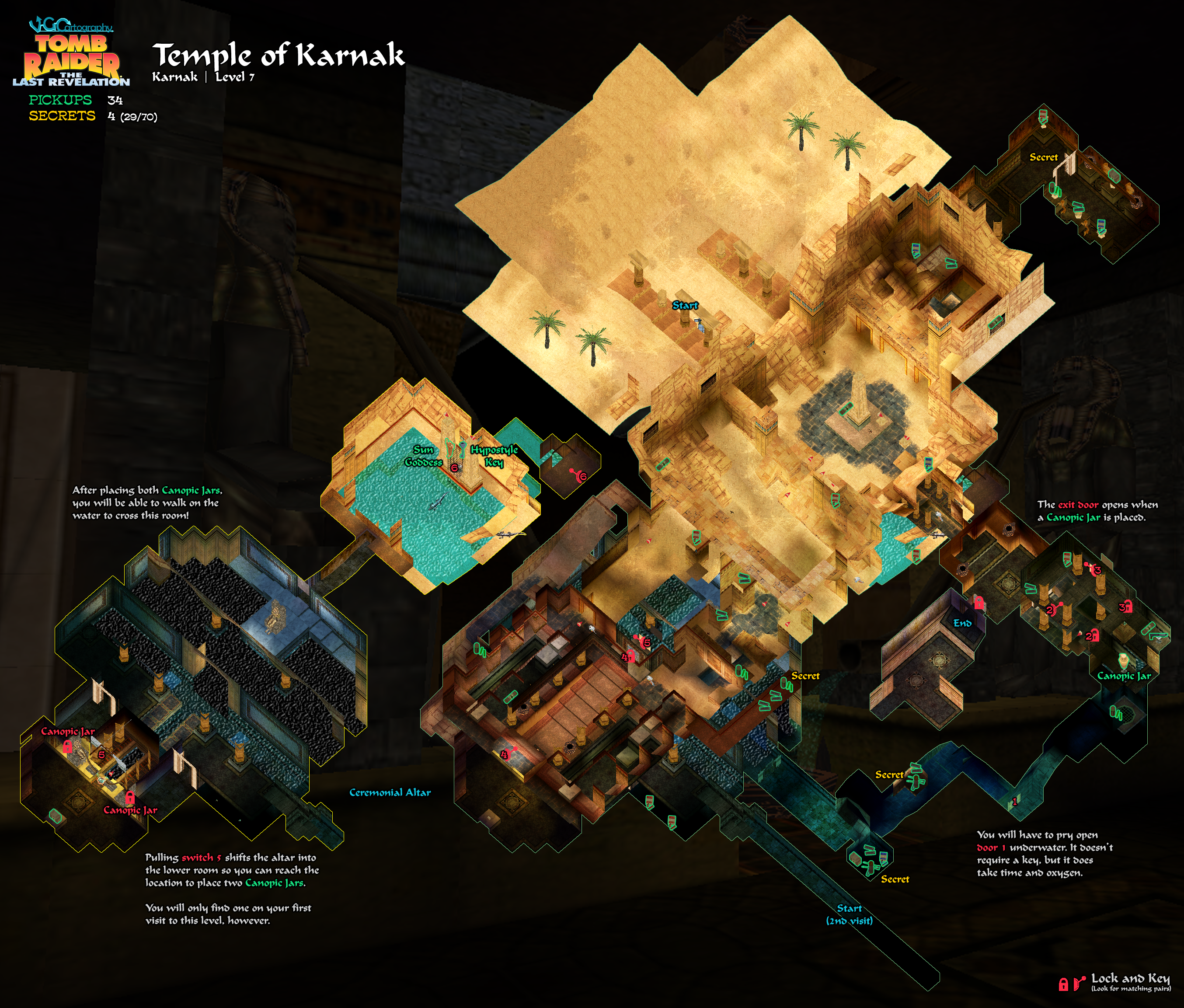 IMPORTANT: This level, along with the next two, the GREAT HYPOSTYLE HALL and the SACRED LAKE, are like one big level made up of linked parts. You can move between them as many times as you need to, but twice through each level should be enough if you explore thoroughly. This walkthrough attempts to cover everything with minimal backtracking.