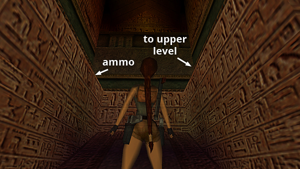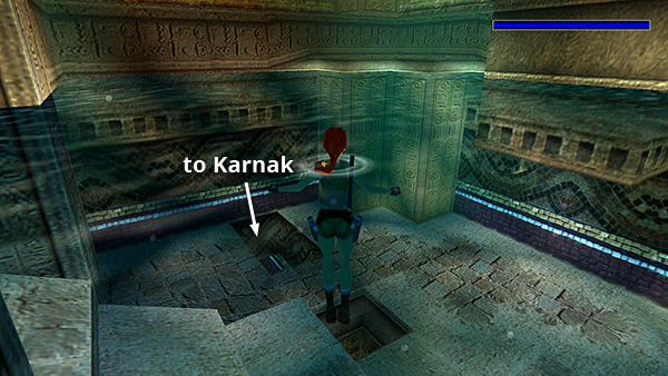 IMPORTANT: This level, the TEMPLE OF KARNAK, and the GREAT HYPOSTYLE HALL are like one big level made up of linked parts. You can move between them as many times as you need to, but twice through each level should be enough if you explore thoroughly. This walkthrough attempts to cover everything with minimal backtracking.
