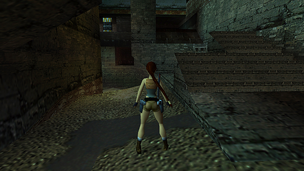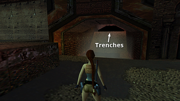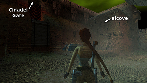 NOTE: Several players have asked about the unreachable alcove in the north wall near the wheel that opens the wooden door. (screenshot) As far as I know, it's impossible to get there except by using the Flight Patch or TR Position Editor. These PC save files include one with Lara in this alcove.