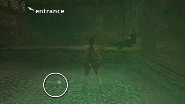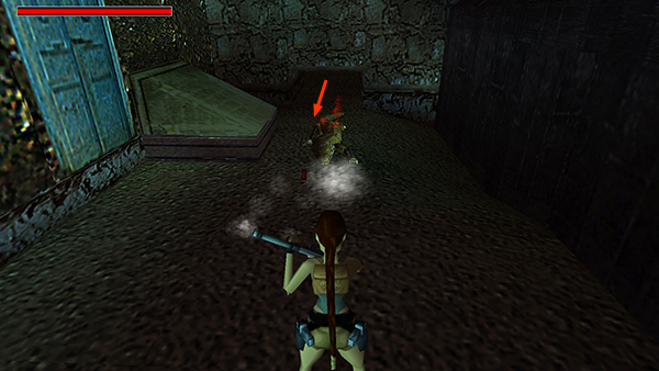 NOTE: If you have even a little health left after coming through the crawlspace, don't bother using a medipack. You'll change levels soon, and Lara's health will be restored.
