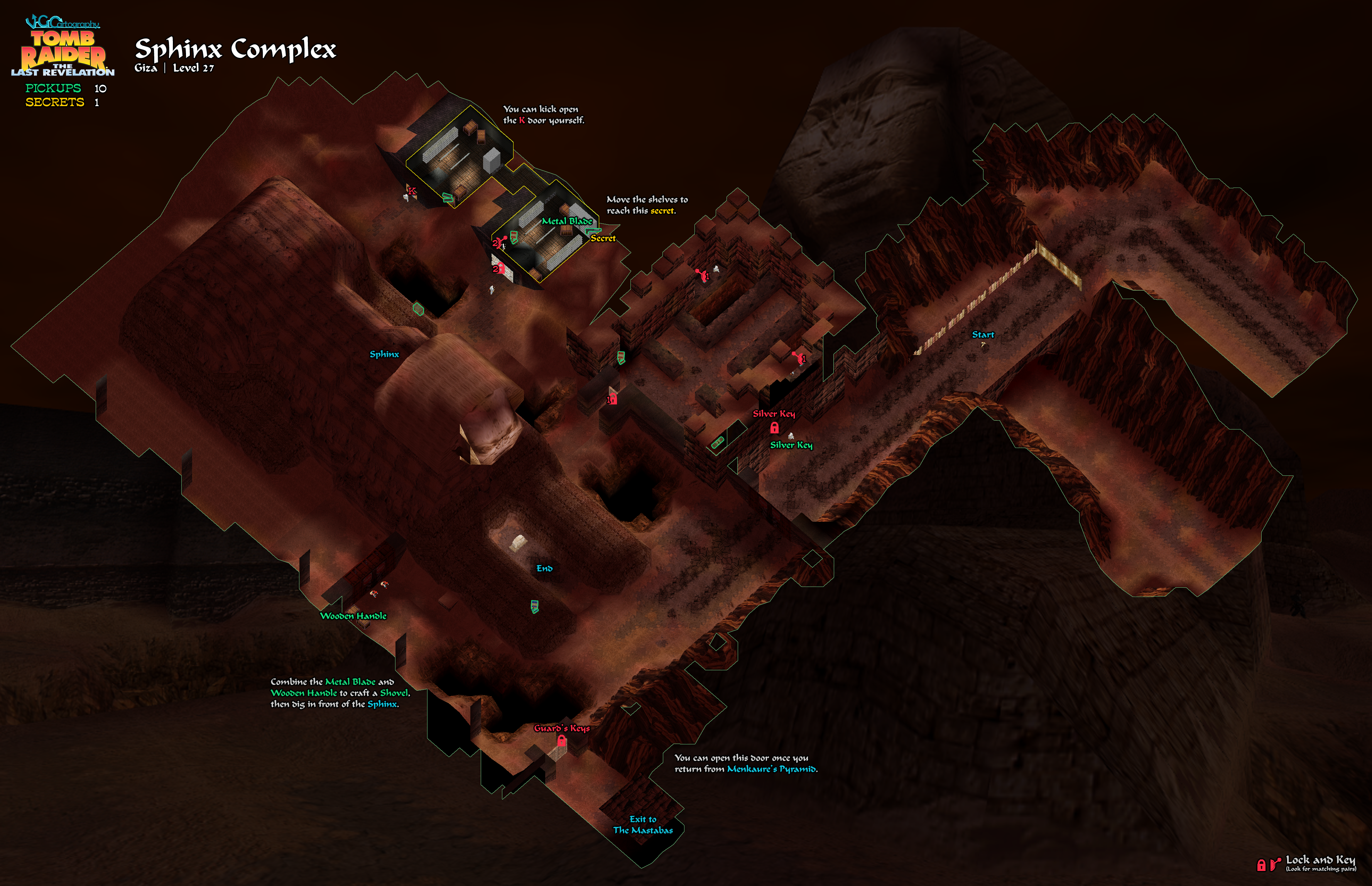 REVISITING THIS LEVEL: There are still a few areas of the SPHINX COMPLEX you haven't explored yet. Don't worry. You'll be back later. This revisit is covered in the walkthrough for INSIDE MENKAURE'S PYRAMID.