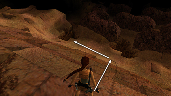 NOTE: For running jumps along the pyramid, like the next one, set up each jump so Lara takes off just a bit before the raised edge of the next block; otherwise, she'll nick her foot on it and end up doing a standing jump instead. You're probably an old pro at setting up jumps by now, but if you need a refresher, check out the Classic Tomb Raider Tips & Strategy section.
