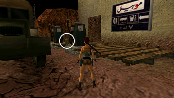 (2) GAS STATION: As you approach this abandoned petrol station, another dog (4) comes out from under the parked truck. (screenshot) Deal with it. Then go around to the other side of the truck and pick up the JERRYCAN (2) near the gas pumps ('JC' on the map). (screenshot)