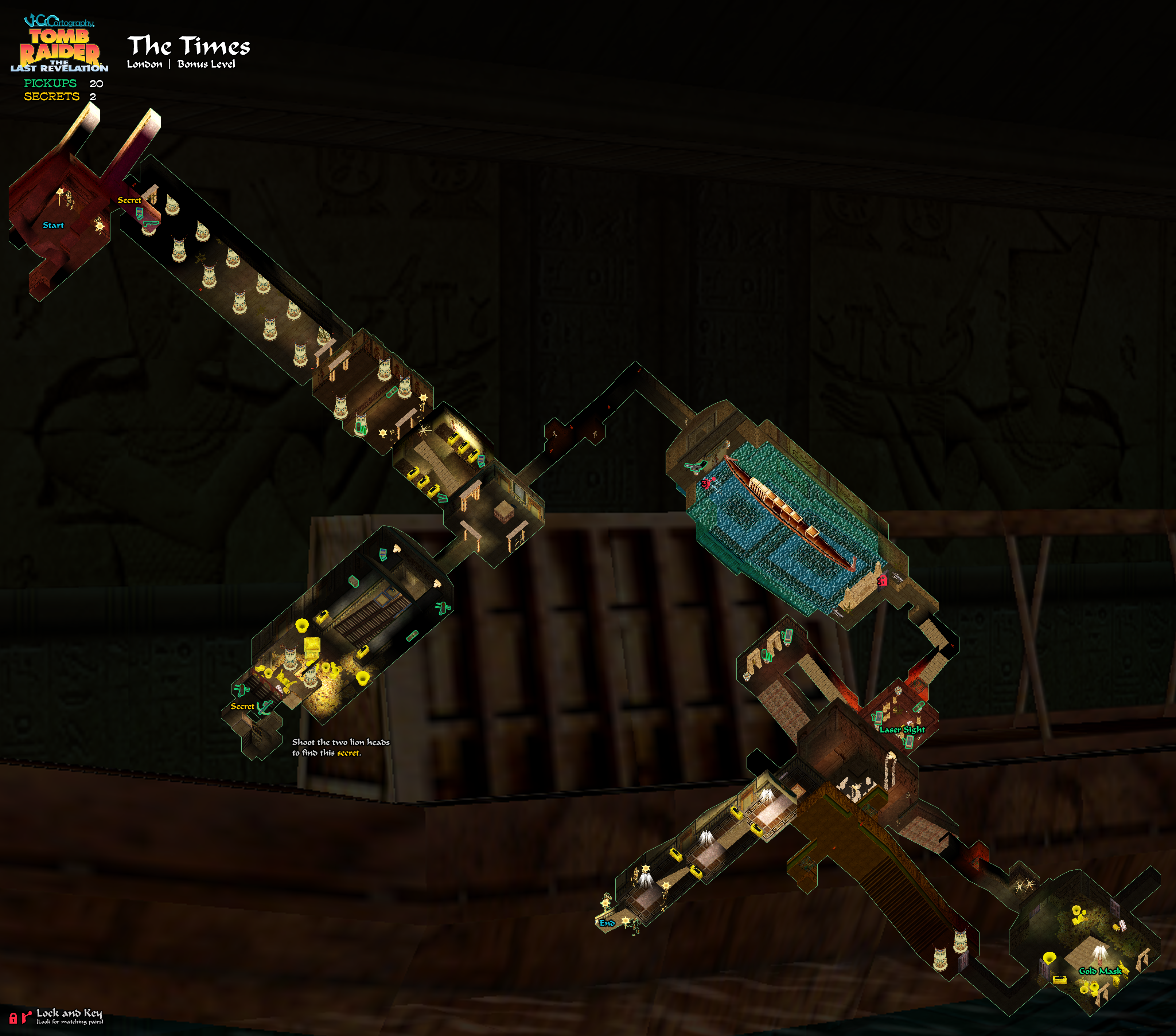 This stand-alone level was produced by Core Design in partnership with the Times of London. It was released in December 1999 as part of a celebration honoring Howard Carter's discovery of the pharaoh Tutankhamun's tomb in the early 1920s, which was financed in part by The Times. The 1999 feature included some real-life background info and a Tomb Raider short story, as well as the playable level download. The Times has since closed these pages, but the level is still available in my downloads section. It's for Windows PC only but does not require the full TR4 game to run.