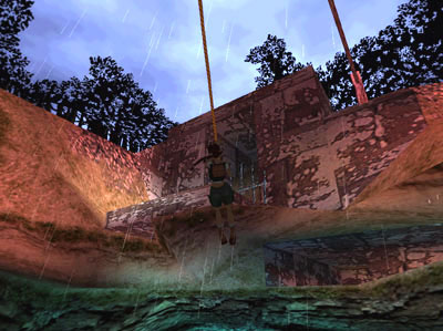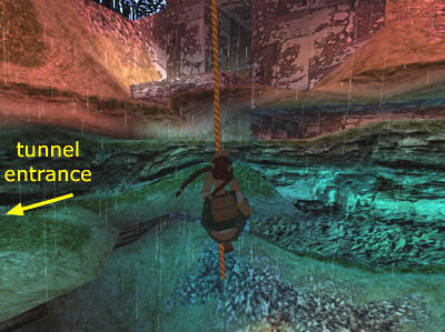 Swing as high as Lara will go. You'll probably need to use Sprint twice—or more if you lose momentum between swings. Then jump to land on the ledge. (Refer to the ROPE SWINGING TIPS at the bottom of the walkthrough page if you need them.)