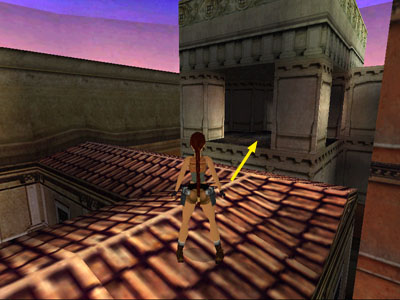 Cross this roof, which is also L-shaped, and take another running jump into the alcove ahead. Here you'll find revolver bullets and a large medipack.